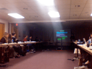 The picture is of the Layne Kalbfleisch’s talk–the last scientific talk of Day 2.