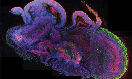 | Stem cell scientists at Edinburgh and the Institute of Molecular Biotechnology in Vienna grew this organoid, or tiny ‘brain’, which measures just 4mm across. Photograph: Madeline A Lancaster/PA |