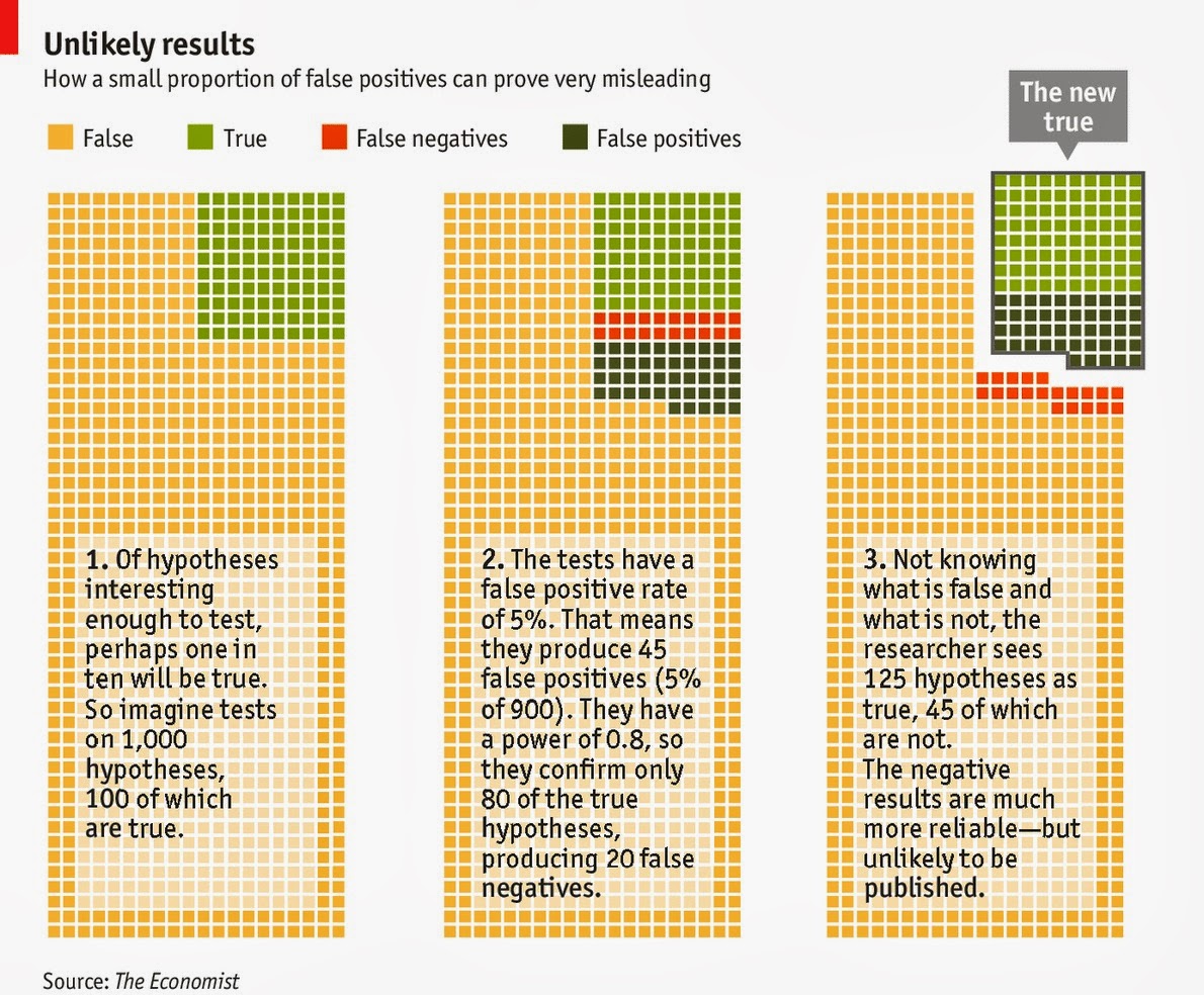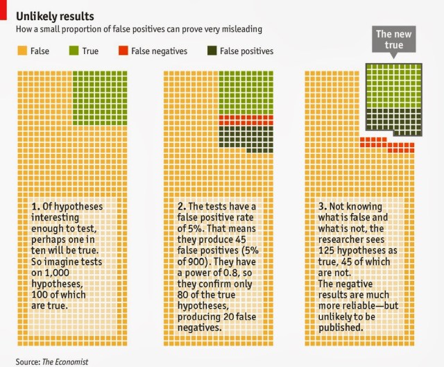The article is here. The figure above demonstrates the non-fraud side of the problem. Central to the problem is the concept of statistical power. A lot of published science studies are statistically underpowered. Kudos to The Economist for publishing a serious and understandable piece about this problem.